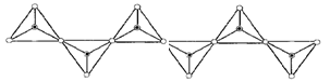 硅酸鹽與二氧化硅一樣,都是以硅氧四面體作為基本結(jié)構(gòu)單元。硅氧四面體可以用投影圖表示成(如下圖);其中O表示氧原子,中心黑點(diǎn)硅原子。硅氧四面體通過不同方式的連接可以組成各種不同的硅酸根離子。試確定在無限長的單鏈陰離子中(見圖),![]()