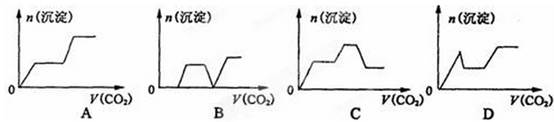 將足量的CO2不斷通入KOH、Ba(OH)2、KA1O2(或K[Al(OH)4])的混合溶液中,生成沉淀與通入CO2的量的關(guān)系可表示為( )![]()