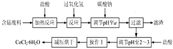 (16分)CoCl2·6H2O是一種飼料營(yíng)養(yǎng)強(qiáng)化劑。以含鈷廢料(含少量Fe、Al等雜質(zhì))制取CoCl2·6H2O的一種新工藝流程如下圖:![]()