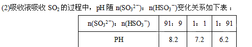 (1) 在鈉堿循環(huán)法中,Na2SO3溶液作為吸收液,可由NaOH溶液吸收SO2制得,該反應(yīng)的離子方程式是 ![]()