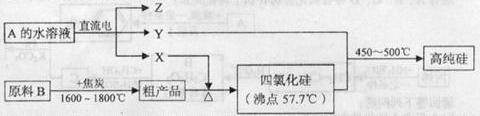 已知:X,高純硅、原料B的主要成分都可與Z反應(yīng),Y與X在光照或點(diǎn)燃條件下可反應(yīng),Z的焰色呈黃色。