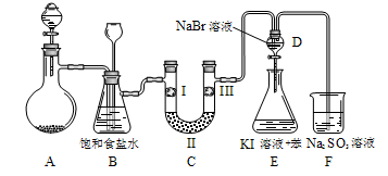 (3)裝置C的實驗?zāi)康氖球炞C氯氣是否具有漂白性,為此C中I、II、III依次放入 。