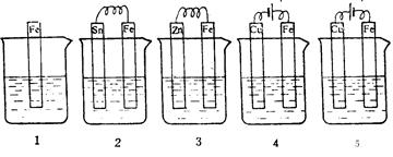 下圖各容器中盛有海水,鐵在其中被腐蝕的速率由快到慢的順序是