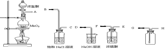 (1) 在A裝置中用固體二氧化錳與濃鹽酸在加熱條件下制取氯氣,若在標(biāo)準(zhǔn)狀態(tài)下收集到33.6L的氯氣,則被氧化的HCl的物質(zhì)的量是 。
