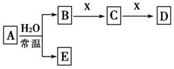 由短周期元素組成的中學(xué)常見的無機(jī)物A、B、C、D、E、X存在如圖轉(zhuǎn)化關(guān)系(部分生成物和反應(yīng)條件略去)。下列推斷不正確的是( 。![]()