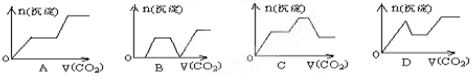 將足量的CO2不斷通入KOH、Ba(OH)2、KAlO2的混合溶液中,生成沉淀與通入CO2的量的關系可表示為 ( ) ![]()