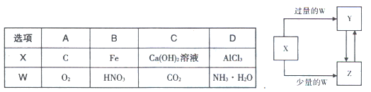 已知X、Y、Z、W均為中學(xué)化學(xué)中常見的單質(zhì)或化合物,它們之間的轉(zhuǎn)化關(guān)系如圖所示(部分產(chǎn)物已略去)。則W、X不可能是( )![]()