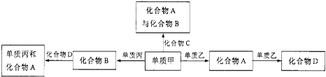 化合物A、B、C、D各由兩種元素組成,甲、乙、丙是短周期元素的三種單質(zhì)。這些常見的化合物與單質(zhì)之間存在如下關(guān)系(已知C是一種有機(jī)物),以下結(jié)論不正確的是![]()