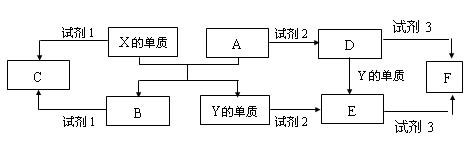 Ⅱ、若X、Y是非金屬單質(zhì),試劑3是NaOH溶液,F(xiàn)的水溶液可作木材的防火材料,則X的單質(zhì)與A反應(yīng)的化學(xué)方程式是__________,試劑1和C的化學(xué)式分別是_____、_____。Y在工業(yè)上的主要用途是________(寫一種)。