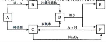 (15分)下列圖中A-F是中學化學常見化合物,且A﹑B﹑E﹑F均含有相同一種金屬元素,G是一種常見單質(zhì)。