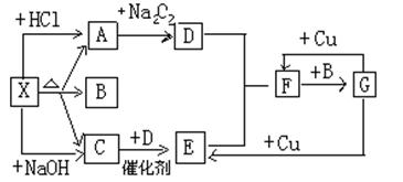 下圖中的每一個(gè)方格表示有關(guān)的一種反應(yīng)物或生成物,其中X為酸式鹽,A是能使澄清石灰水變渾濁的無(wú)色無(wú)味氣體,C是能使?jié)駶?rùn)的紅色的石蕊試紙變藍(lán)的無(wú)色氣體,請(qǐng)回答:![]()