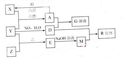 圖中X、Y、Z為單質(zhì),其他為化合物,它們之間存在如下轉(zhuǎn)化關(guān)系(部分產(chǎn)物已略去)。其中,A俗稱(chēng)磁性氧化鐵:E是不溶于水的酸性氧化物,能與氫氟酸反應(yīng)。![]()