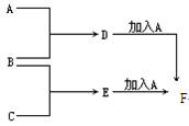 A、B、C為3種單質(其中A為固體,B、C為氣體),D的溶液為棕黃色,加氫氧化鈉溶液后出現(xiàn)紅褐色沉淀,B、C反應的產物易溶于水得到無色溶液E。它們之間的轉化關系如圖:![]()