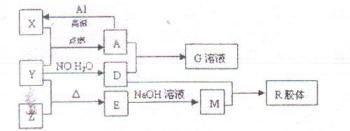 (7分)圖中X、Y、Z為單質(zhì),其他為化合物,它們之間存在如下轉(zhuǎn)化關(guān)系(部分產(chǎn)物已略去)。其中,A俗稱磁性氧化鐵;E是不溶于水的酸性氧化物,能與氫氟酸反應(yīng),回答下列問題:![]()