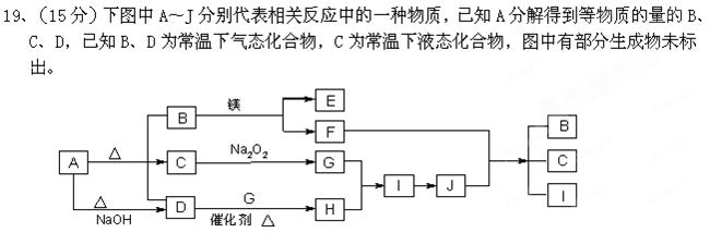 (9分).A~L是由6種短周期元素組成的物質(zhì),各物質(zhì)之間有如下轉(zhuǎn)化關(guān)系:![]()