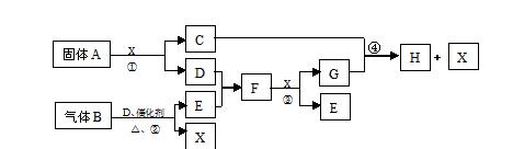 (12分)根據(jù)下列框圖關(guān)系填空。已知常溫下X為無色液體,D、E均為無色氣體,