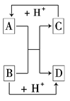 (8分)已知A、B、C、D是中學(xué)化學(xué)中常見的四種不同粒子.它們之間存在如下圖所示的轉(zhuǎn)化關(guān)系:![]()