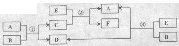 (10分)A、B、C、D、E、F六種物質(zhì)在一定條件下有如圖所示相互轉(zhuǎn)化關(guān)系,所有反應(yīng)物和生物均已給出。![]()