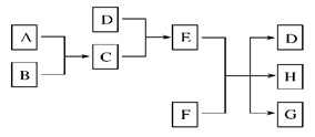 已知A、B、C、D為氣體,E、F為固體,G是氯化鈣,它們之間的轉(zhuǎn)化關(guān)系如圖所示:![]()