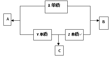 (8分)X、Y、Z三種短周期元素,它們的原子序數(shù)之和為16。X、Y、Z三種元素的常見單質(zhì)在常溫下都是無色氣體,在適當(dāng)條件下可發(fā)生如圖所示變化:已知一個B分子中含有的Z元素的原子個數(shù)比一個C分子中少一個。請回答下列問題:![]()
