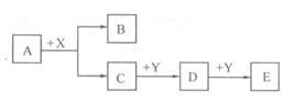 (13分)A、B、C、D、E、X、Y為中學(xué)常見(jiàn)的七種物質(zhì),它們有如下轉(zhuǎn)化關(guān)系(部分產(chǎn)物與反應(yīng)條件略去):![]()