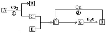 (3)反應②可用于汽車加裝尾氣催化凈化裝置,可以使B和E轉(zhuǎn)化成無毒的氣體,試寫出反應②的化學方程式: 。
