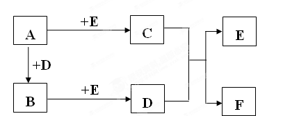 (6分)有A、B、C、D、E、F六種物質(zhì),它們的相互轉(zhuǎn)化關(guān)系如下圖(反應(yīng)條件及部分產(chǎn)物已略)。已知A、B、E均為單質(zhì),B、E在常溫下為氣體,C為淡黃色固體。![]()
