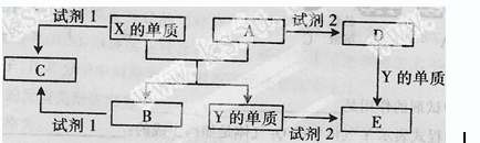 (10分)A、B、C、D、E是中學(xué)常見的5種化合物,A、B是氧化物,元素X、Y的單質(zhì)是生活中常見的金屬,相關(guān)物質(zhì)間的關(guān)系如下圖所示。![]()