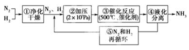⑤下列是哈伯法合成氨的流程圖,其中為提高原料轉(zhuǎn)化率而采取的措施有 ![]()