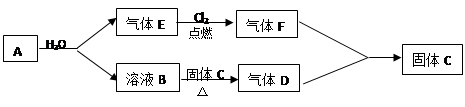 下圖中的每一方框內(nèi)表示一種反應(yīng)物或生成物,其中A、C、D、E、F在通常情況下均為氣體,且A與C物質(zhì)的量之比為1:1。B為常見液體。 ![]()