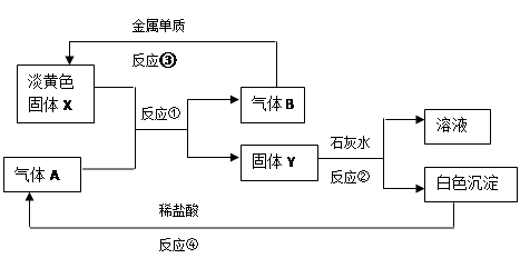 (14分)淡黃色固體X和氣體A存在如下轉(zhuǎn)化關(guān)系:![]()