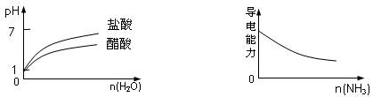 | C.pH=1的醋酸與鹽酸分別加水稀釋 | D.氨氣通入醋酸溶液中 |