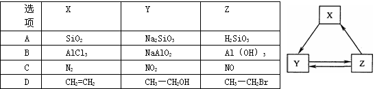 下表各組物質(zhì)之間通過一步反應不可以實現(xiàn)如圖所示轉(zhuǎn)化關(guān)系的是( )![]()