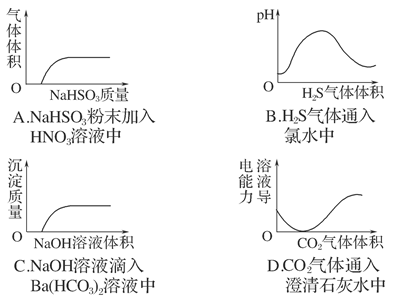 下列實(shí)驗(yàn)過(guò)程中產(chǎn)生的現(xiàn)象與對(duì)應(yīng)的圖象相符合的是( )![]()