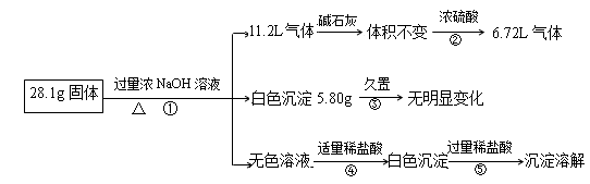 (12分)某固體混合物可能含Al、(NH4)2SO4、MgCl2、A1Cl3、FeCl2、NaCl中的一種或幾種,現(xiàn)對(duì)該混合物作如下實(shí)驗(yàn),所得現(xiàn)象和有關(guān)數(shù)據(jù)如圖(氣體