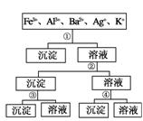 用過量的H2SO4、NaOH、NH3·H2O、NaCl等溶液,按如圖所示步驟分開五種離子,則溶液①、②、③、④是 ( )![]()