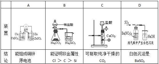 | D | NaHCO3溶液與NaAlO2溶液混合產(chǎn)生白色沉淀 | 同濃度溶液的pH:NaAlO2> NaHCO3 |