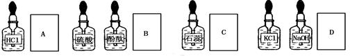 實驗室中的藥品常按物質(zhì)的性質(zhì)、類別不同而有規(guī)律的保管著。在做“酸的性質(zhì)”實驗時,實驗桌上的部分藥品的擺放如圖所示。某同學取用KOH溶液以后應把它放回A、B、C、D四處中的![]()