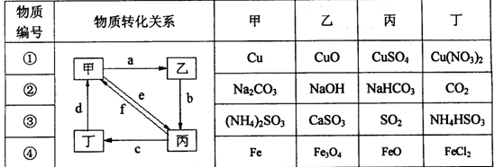 下表各組物質(zhì)中,物質(zhì)之間通過一步反應就能實現(xiàn)如右圖所示轉(zhuǎn)化的是( )![]()