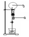 在下圖裝置中,燒瓶中充滿(mǎn)干燥氣體a,將滴管中的液體b擠入燒瓶?jī)?nèi),輕輕振蕩燒瓶,然后打開(kāi)彈簧夾f,燒杯中的液體b呈噴泉狀噴出,最終幾乎充滿(mǎn)燒瓶.則a和b分別是![]()