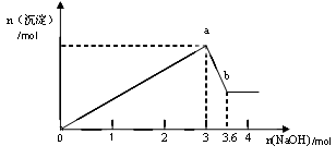 (2)另取部分溶液,加入氫氧化鈉,有白色沉淀產(chǎn)生,加入氫氧化鈉的量與生成白色沉淀的量可用下圖表示。![]()