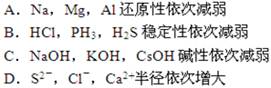 | A.酸性強(qiáng)弱: H2SiO3<H3PO4<H2SO4<HClO4 |