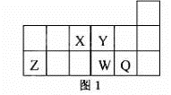 短周期元素X、Y、Z、W、Q在元素周期表中的相對(duì)位置如圖1所示。下列說(shuō)法正確的是 ( )![]()