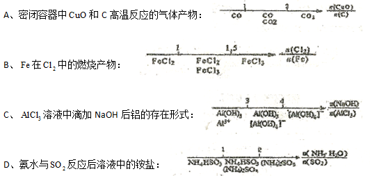 量數(shù)與產(chǎn)物之間的關(guān)系時,使用類似數(shù)軸的方法可以收到的直觀形象的效果。下列表達(dá)錯誤的是![]()