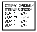 日常生活中,我們經(jīng)常飲用礦泉水。如圖是某飲用天然水部分商標(biāo)圖,圖中列出了理化指標(biāo)。我據(jù)此回答:這里的鈣、鎂、鉀、鈉指的是()![]()