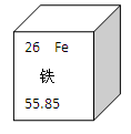 | A.該元素的名稱是鐵 | B.該元素的原子序數(shù)為26 |