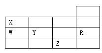 下表為元素周期表前四周期的一部分,下列有關(guān)R、W、X、Y、Z五種元素的敘述中,正確的是![]()