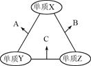,原子序數(shù)之和為16。X、Y、Z三種元素的常見單質(zhì)在適當(dāng)條件下可發(fā)生如圖所示變化,其中B和C均為10電子分子。下列說法不正確的是![]()