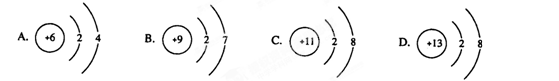 在下圖所表示的微粒中,氧化性最強(qiáng)的是(B )![]()