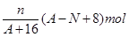 核內中子數(shù)為N的R2+離子,質量數(shù)為A,則n克它的氧化物所含電子物質的量為( )